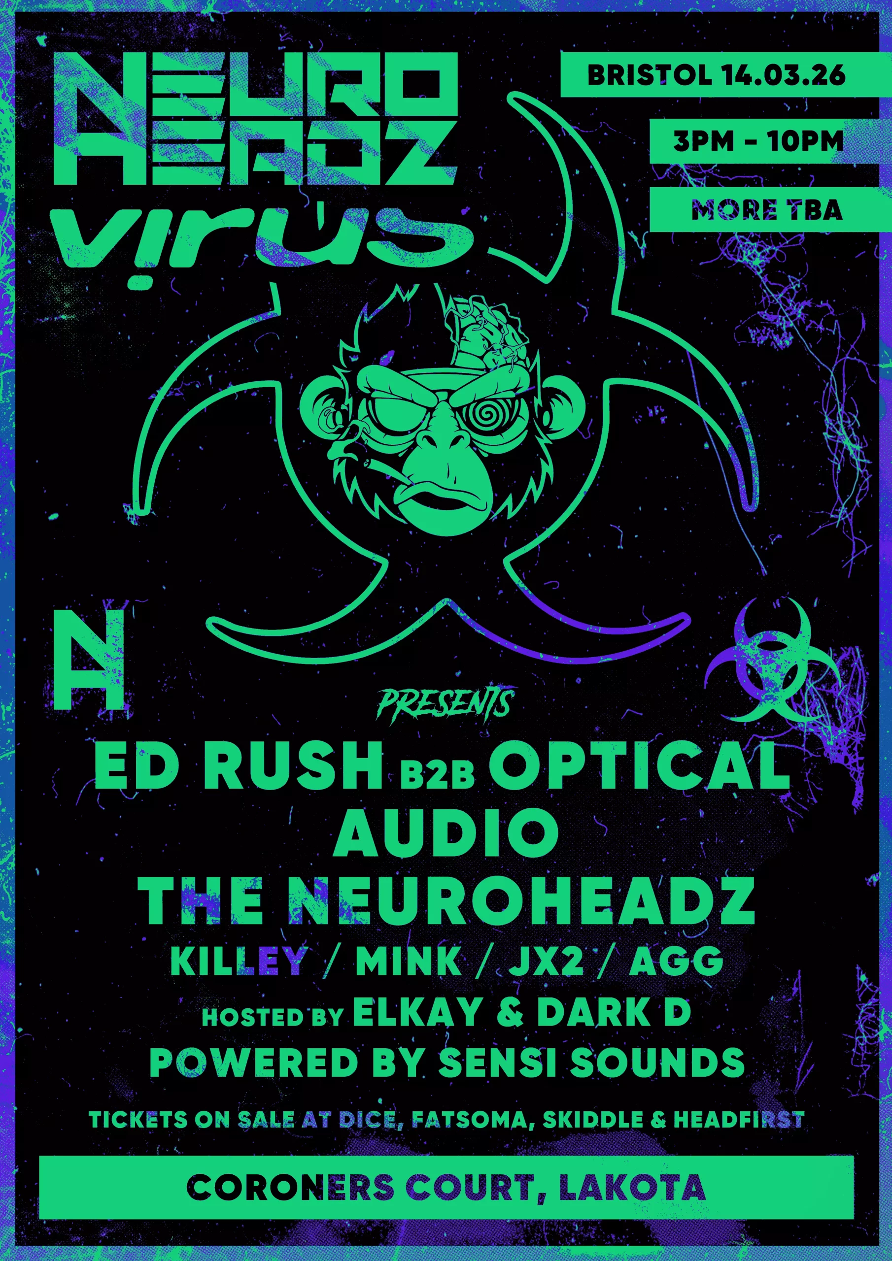 Neuroheadz nights return on March 14th as we invite the legends from Virus Recordings for what is becoming an iconic link up. With previous shows in 2024 & 25, this one is shaping up to be the biggest one yet!